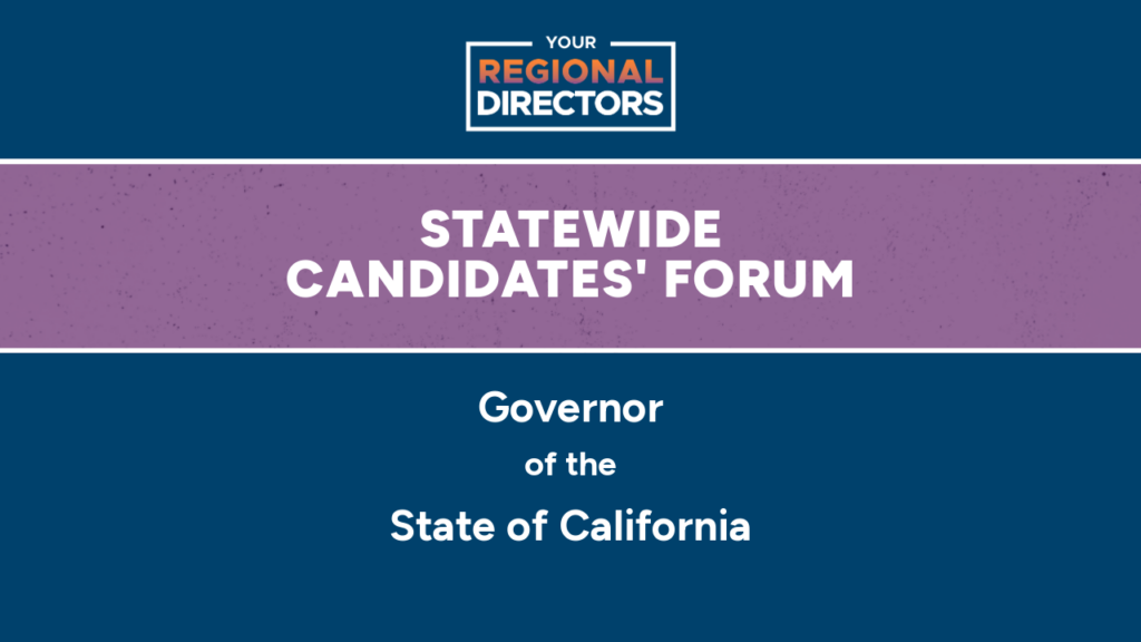 Leading up to the 2026 Endorsing Convention in San Francisco, YOUR Regional Directors conducted three forums with the candidates seeking the Party nomination.